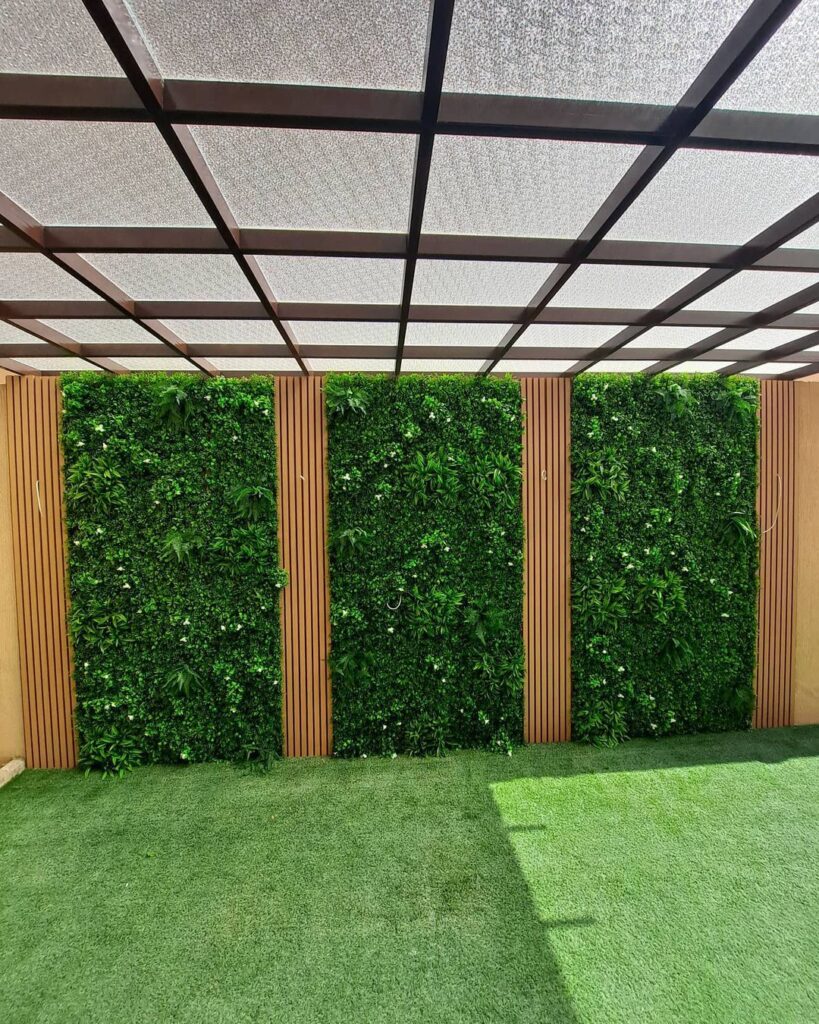 يعد العشب الجداري خيارا مثاليًا لإضفاء لمسة طبيعية على الجدران في المساحات الداخلية والخارجية، وهو شائع الاستخدام في أبوظبي لما يتميز به من مظهر جذاب وسهولة في التركيب. يتم تثبيت العشب الجداري على الأسطح باستخدام أدوات خاصة تضمن ثباته ومتانته مع مرور الوقت، ويُستخدم في تزيين الجدران الفارغة في الحدائق والمداخل وحتى الشرفات. يوفّر هذا النوع من العشب مظهرا أخضر دائمًا دون الحاجة إلى عناية مستمرة أو ري، ما يجعله مثاليا للبيئة الصحراوية التي تتميز بندرة المياه.